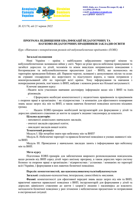 Навчання з попередження ризиків від вибухонебезпечних предметів UDA Доступний постійно Зареєструватися ПРО КУРС Нині Україна є країною з найбільшим забрудненням території мінами та вибухонебезпечними предметами у світі. Через це різко зросла небезпека травмування і загибелі дорослих та дітей, чоловіків та жінок внаслідок неправильного поводження з боєприпасами та вибухонебезпечними предметами на територіях проведення бойових дій. В […]