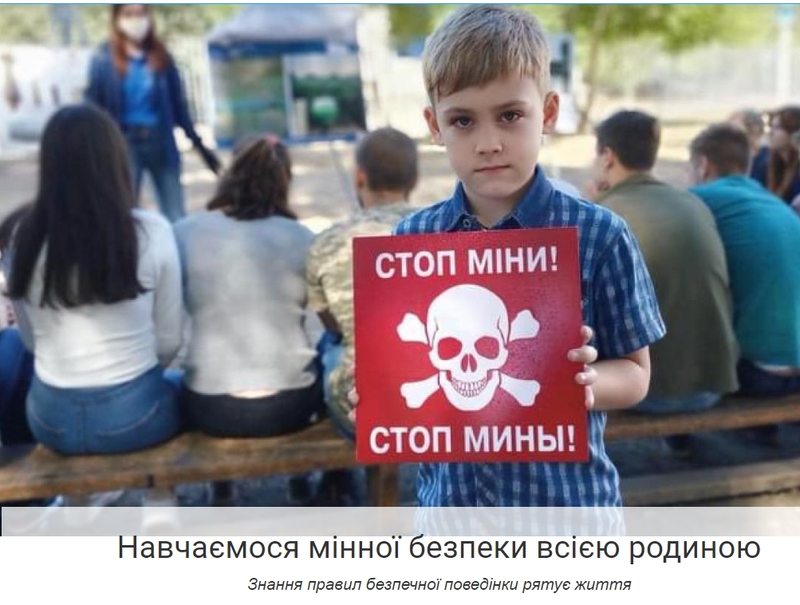 Україна увійшла до переліку країн, найбільш забруднених мінами: приблизно 30% її території є потенційно небезпечними через вибухонебезпечні предмети. Моніторингова місія ООН з прав людини в Україні підтвердила, що міни та інші вибухонебезпечні предмети спричинили 100 жертв серед дітей у період із 24 лютого 2022 року по 30 липня 2023 року. З огляду на це Дитячий фонд ООН (ЮНІСЕФ) спільно з Міністерством освіти і науки України розробляють практикум з мінної безпеки, аби кожен школяр знав правила, які зберігають життя та здоров’я. Окрім того, вчителям буде доступний онлайн-курс з викладання мінної безпеки для дітей різних вікових груп.